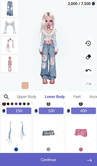 3.选择对应的服饰,有的支持多种颜色,可以变色,人物右侧有上一步和下一步用你的指尖扰乱我吧2,橡皮可以撤销角色身上的一切装扮。